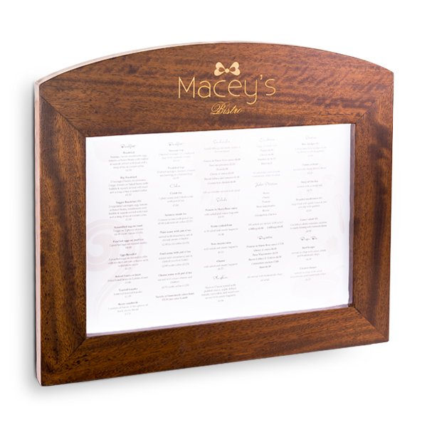 Nous offrons une large gamme de couvertures de menu, de portants à menus, de livrets d’information et autres produits d’accueil, qui sont disponibles à l’achat dès maintenant. Nous avons de larges gammes dans un grand choix de matériau comme des protège menus en bois, protège-menus en métal, protège menus style cuir, ainsi que des porte menus à pied, porte-menus muraux à utilisation intérieure ou extérieure, des livrets d'accueil en bois, livrets d'accueil en cuir, chevalets de table en métal, chevalets de table en acrylique en PVC, chevalets de table en bois et des stop-trottoir en bois.