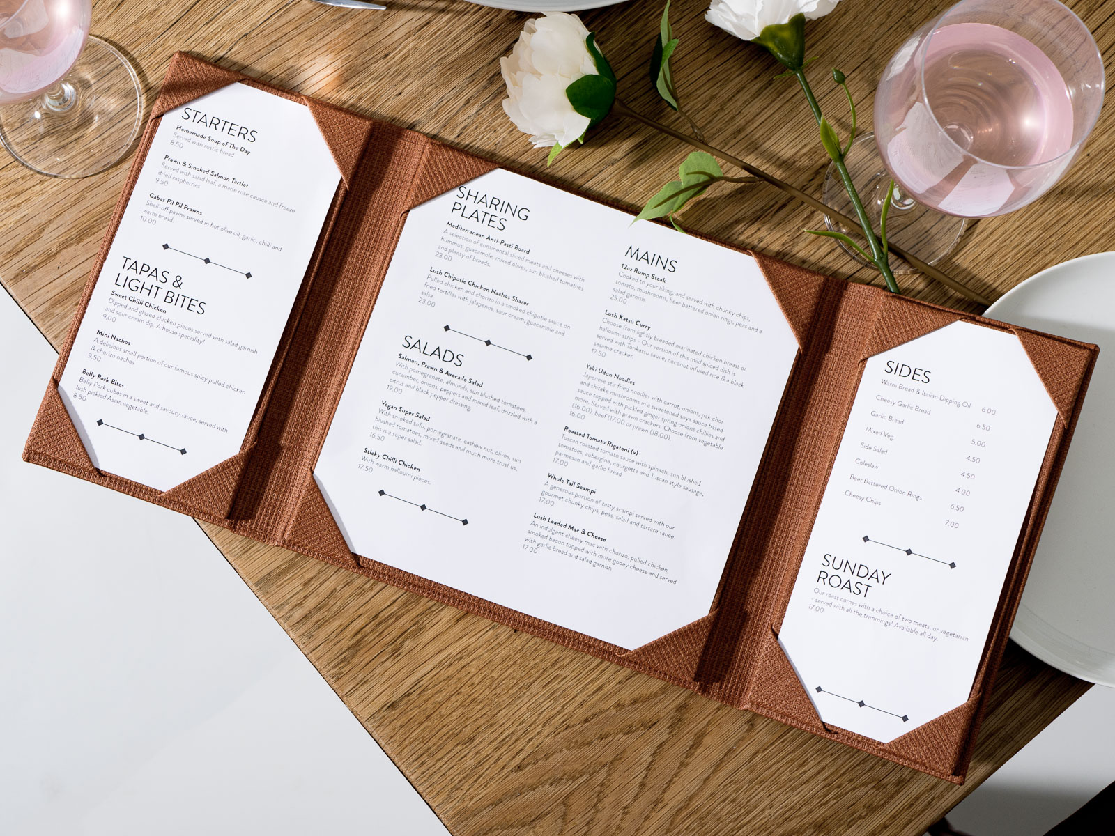 Si vous cherchez un menu plus compact pour vos tables, le dépliant est peut-être la solution qu'il vous faut.