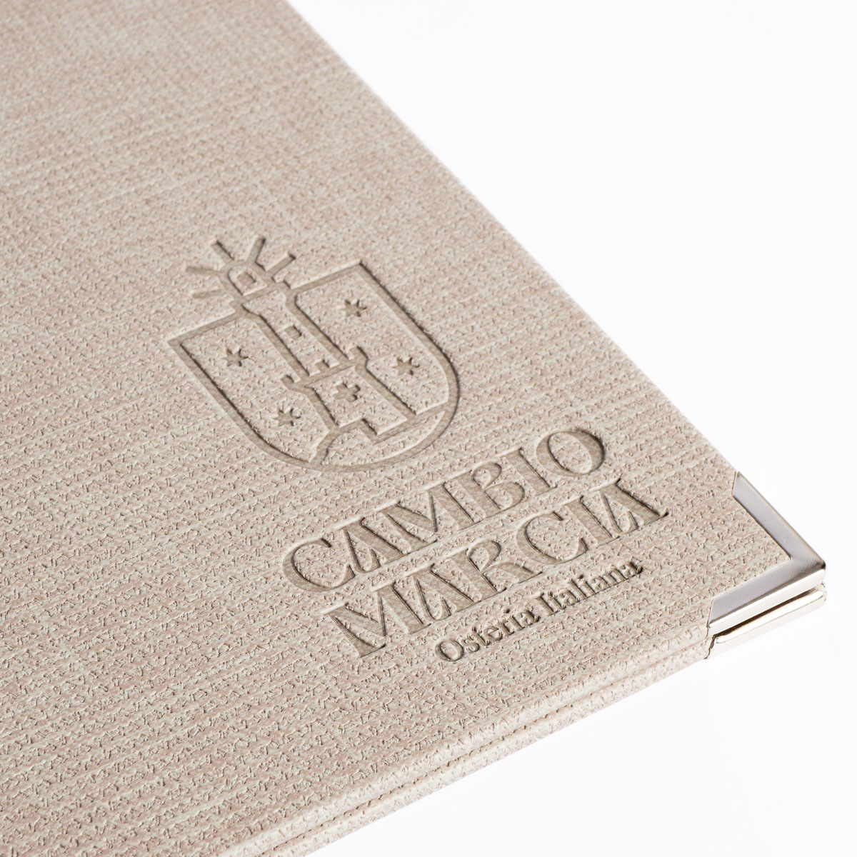 Pour parfaire l'aspect visuel de vos menus et leur apporter une touche unique ajoutez votre logo grâce à un marquage coloré, un gaufrage élégant ou une plaque imprimée en couleur.