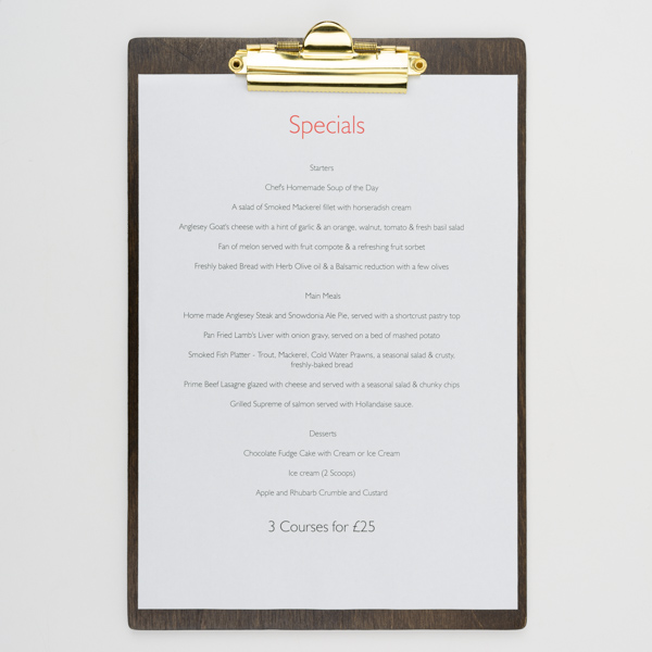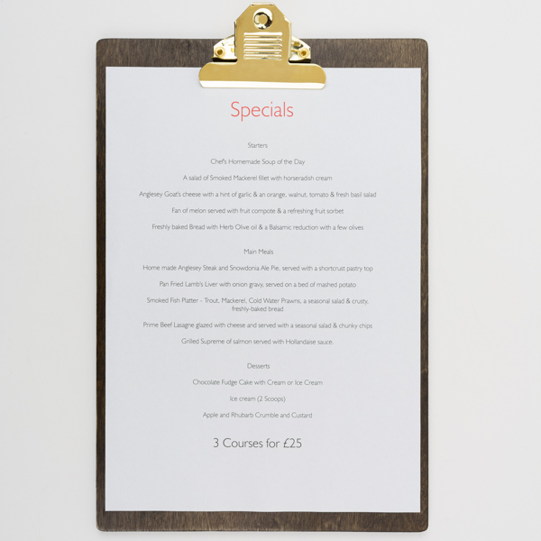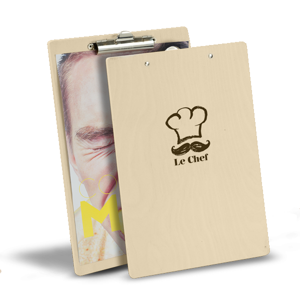Plus de détails sur la livraisonLes planchettes Andorre ont un look passe-partout et sont très populaires grâce à leurs pinces qui permettent de changer les menus rapidement et d’y ajouter ou d’enlever des pages à souhait. Les planches sont en bois reconstitué, disponibles en finition bois clair ou foncé, de bonne qualité et faciles à entretenir. Elles sont disponibles en trois formats (A4, Slim et A5) et proposent trois types d’attaches: pince arrondie, pince plate et pince bouledogue, disponibles dans une sélection de couleurs.