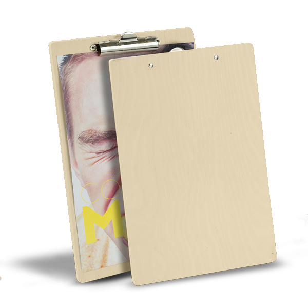 Planchette en bois reconstitué personnalisable, avec fixation à pince