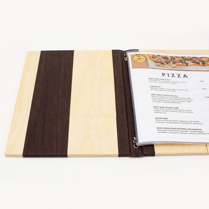 Le protège-menu en bois est facile à nettoyer et est résistant aux éraflures, ce qui permet d’offrir une présentation à la fois solide, élégante et moderne. Chaque menu est disponible avec un large choix de fixations intérieures.