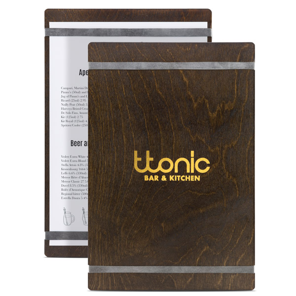 Plusieurs finitions de bois sont disponibles au format A4, A5 ou slim. Vous pouvez également personnaliser vos planchettes avec votre propre texte, design ou logo au verso.
