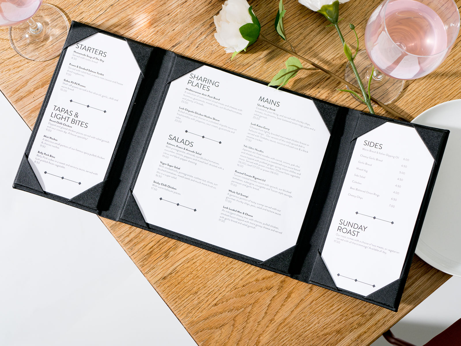 Our Menushop classic gatefold was designed for those looking to present all their offerings on a single easy to use menu system.