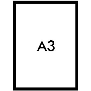 Choisissez entre un cadre noir ou argenté au format A5, A4 ou A3 qui peut être collé sur des fenêtres, vitrines ou d'autres surfaces planes.