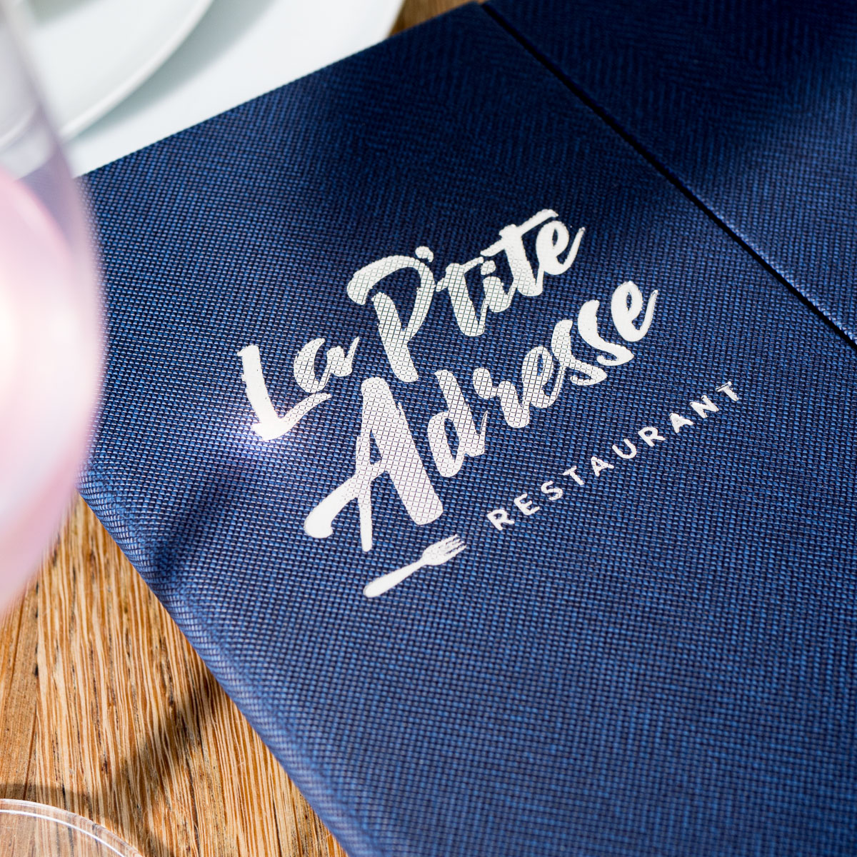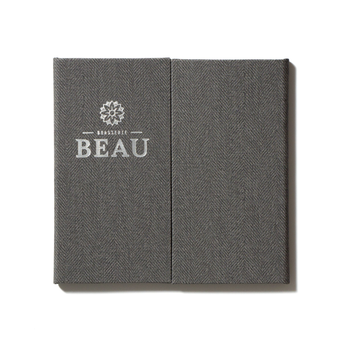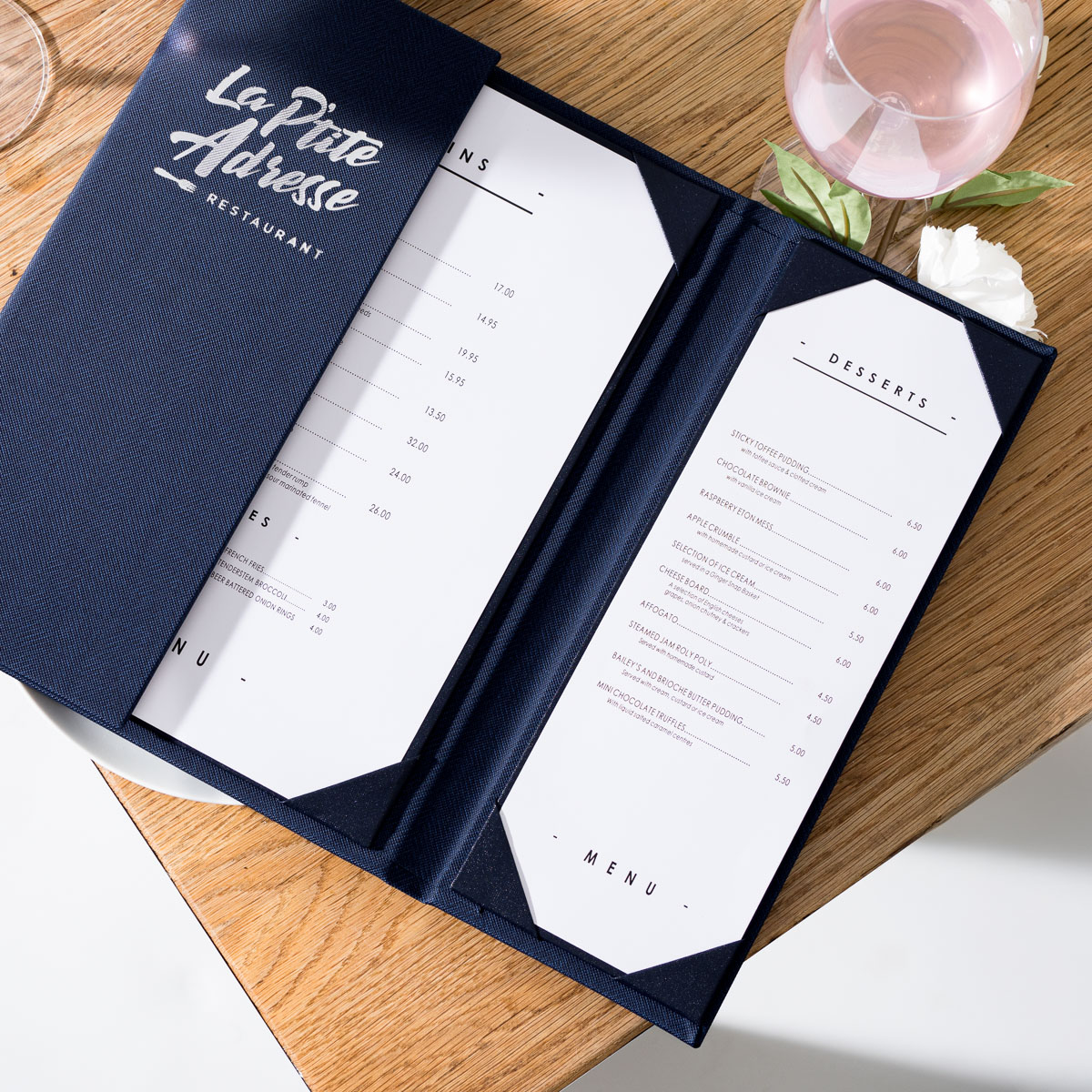 Nos menus dépliants sont compacts et faciles à tenir en main. De plus, le matériau Héritage possède une texture agréable au toucher.