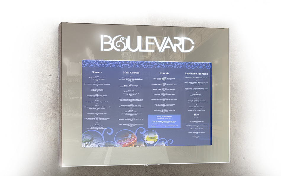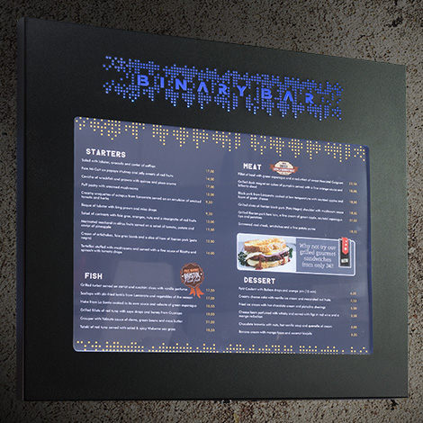 Our menu display cases are designed to amaze, attract attention and create interest. They are the perfect solution if you want to show off your menu, or any information you would like to share with your customers. Available in different sizes, colours and styles they can all be personalised with your own logo or design. You will find the perfect solution for every style: rustic atmosphere, smart, elegant, classy, contemporary, modern or specific theme environment.