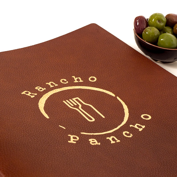 Protège-menu en simili cuir, disponible dans une gamme de couleurs uniques