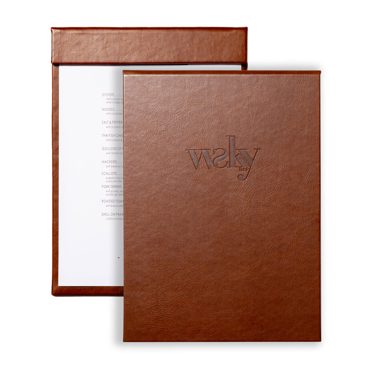 Planchette à menu en simili-cuir avec rabat magnétique, facile à entretenir