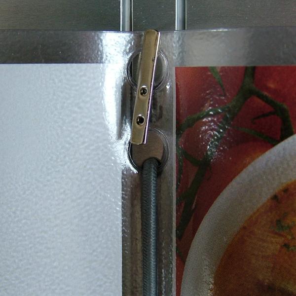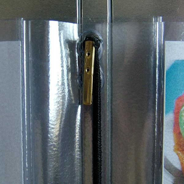 Faciles à utiliser et à remplacer, ces pochettes en PVC coulissantes se positionnent aisément grâce au cordon élastique central. Les pochettes sont maintenues en place grâce à deux petites encoche situées au niveau du haut et du bas de la pochette.