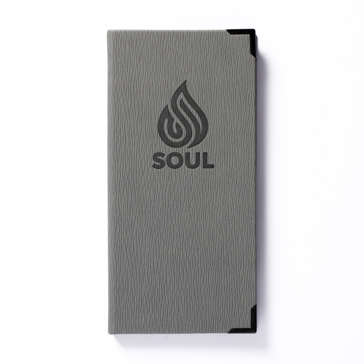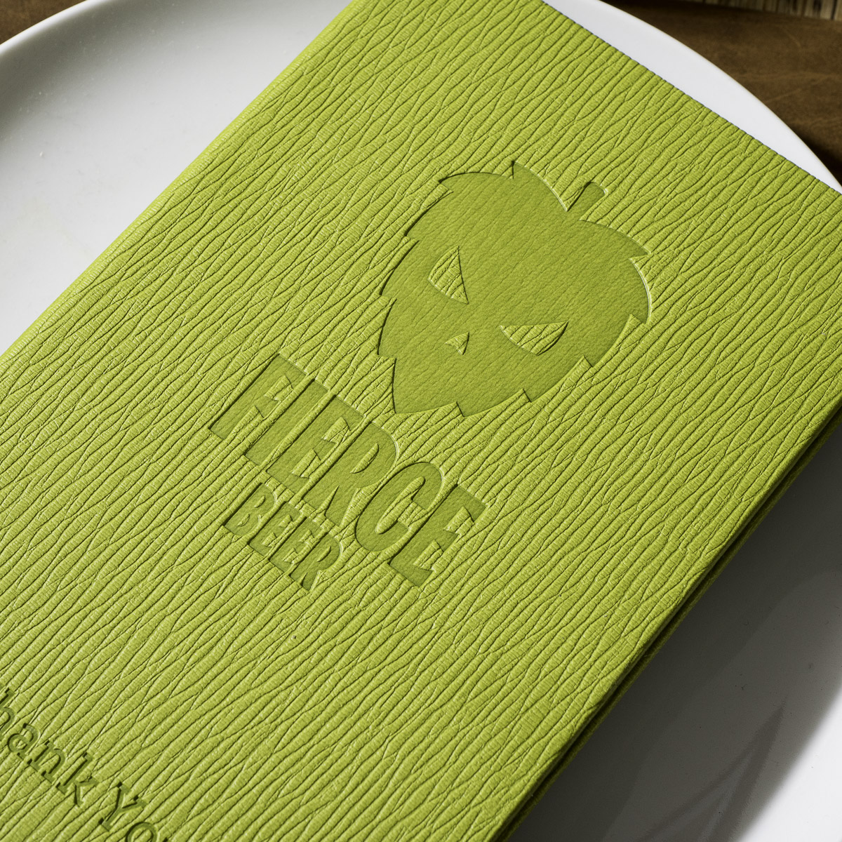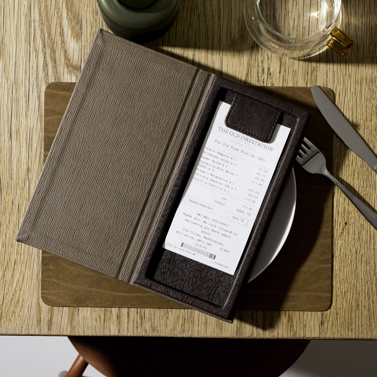 Notre matériau Jura est également disponible pour de nombreux produits, notamment des protège-menus, des livrets d’accueil et des planchettes à menus.