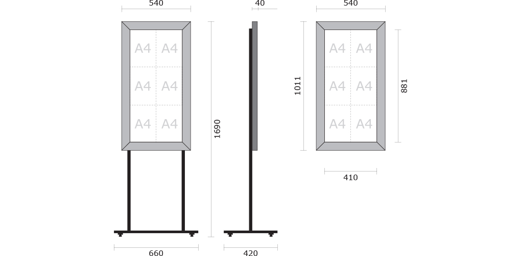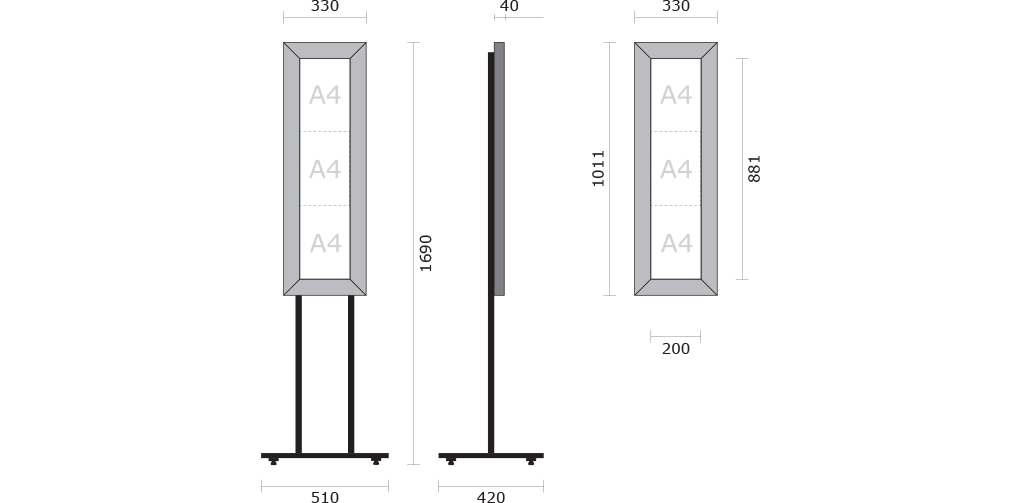 Ces bases autoportantes verticales peuvent être vendues avec quatre roues verrouillables pour faciliter leur déplacement. Si aucune alimentation secteur n'est disponible, nous pouvons vous fournir une batterie rechargeable. Pour plus d'informations sur chaque modèle, veuillez consulter l'onglet « Options ».