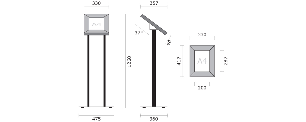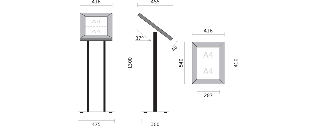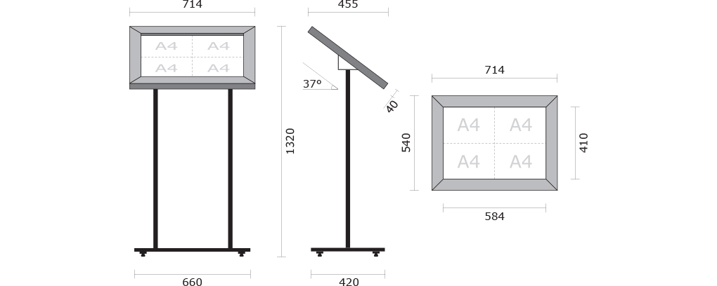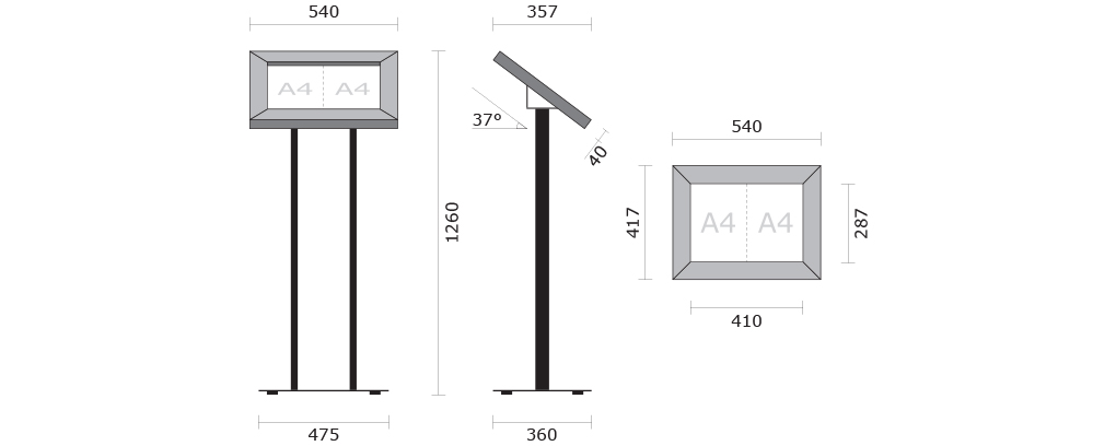 Le porte-menu incliné au format A3 est fourni avec une base standard légère.