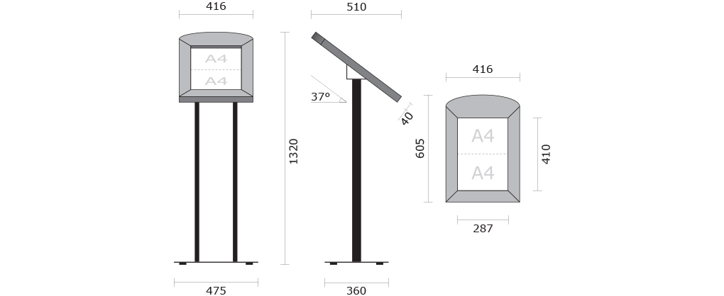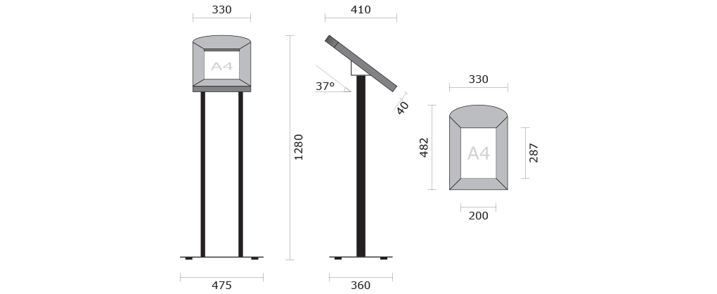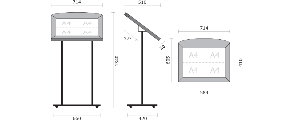Superbe pupitre en bois, personnalisable avec une base autoportante, adaptée à une utilisation en extérieur.