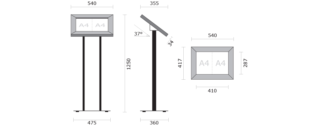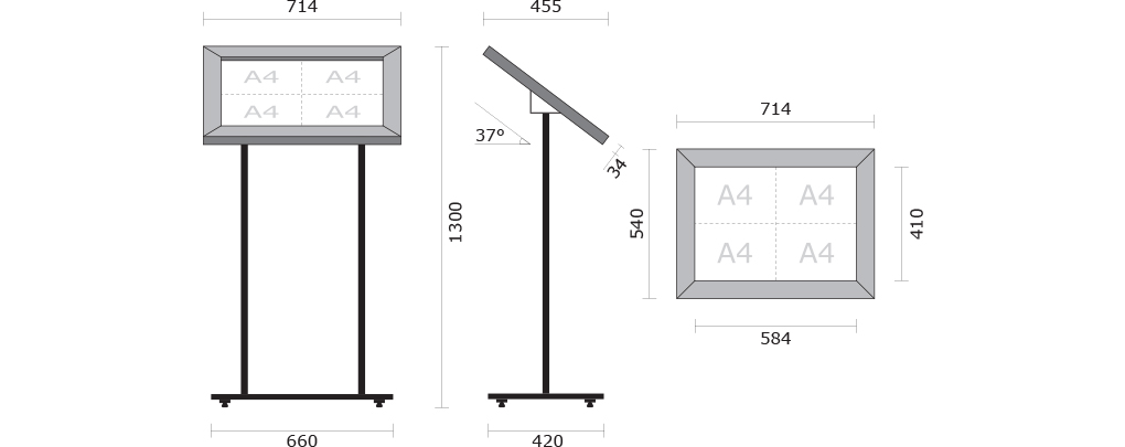 Porte-menu sur pied avec cadre incliné, avec personnalisation