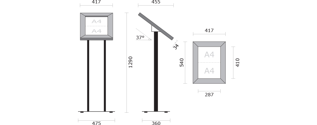 Les affiches, menus ou insertions peuvent être changés rapidement et facilement, il suffit de déverrouiller le cadre et de soulever la partie supérieure. Des roulettes verrouillables sont disponibles en option.