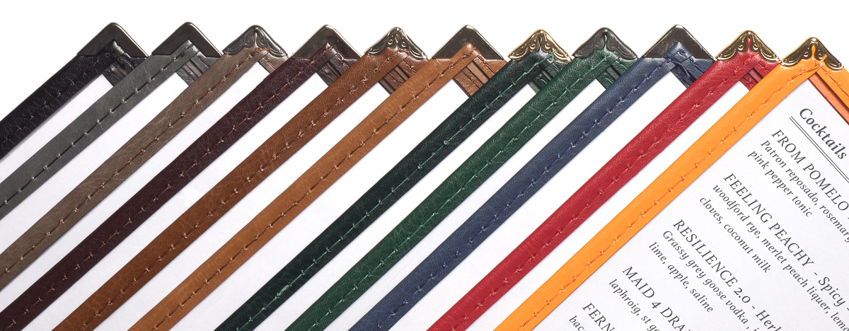 Chaque pochette possède des coins protecteurs et une bordure de couleur qui est cousue au protège-menu. Découvrez notre large choix de couleurs !