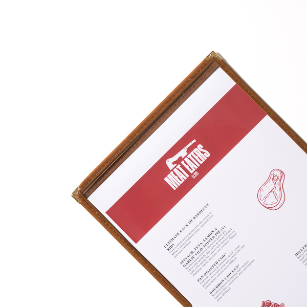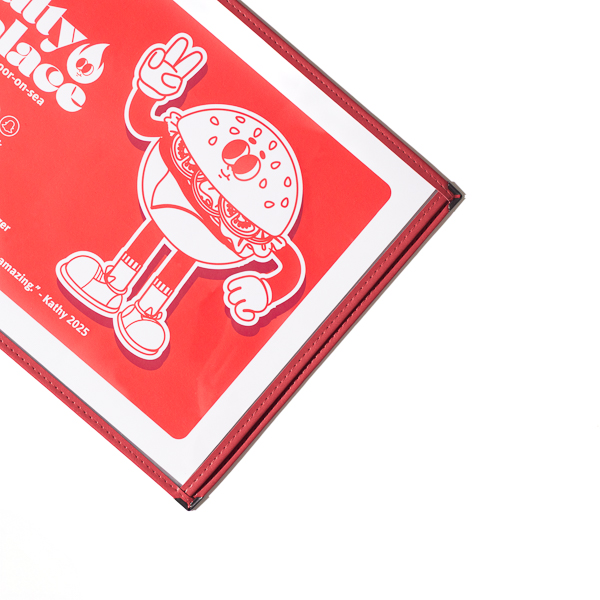 Pochette pour menus populaires en plastique, parfaits pour les petits budgets, facile à nettoyer.