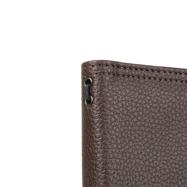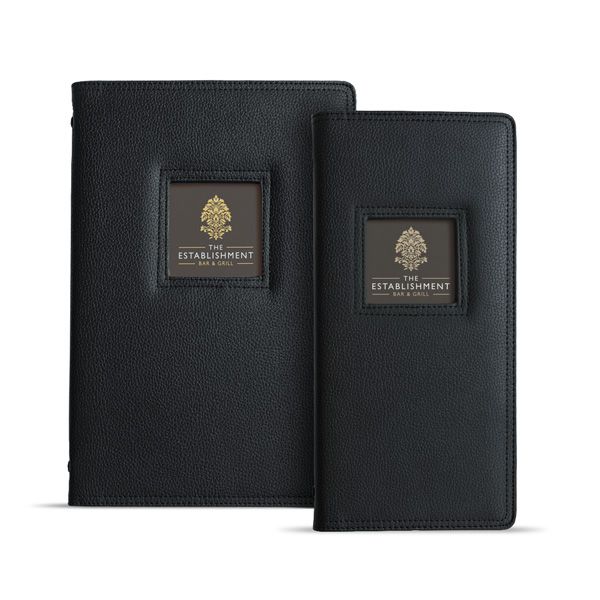 Chaque protège-menu est cousu à la main et disponible avec une finition texturée marron foncé ou noire.