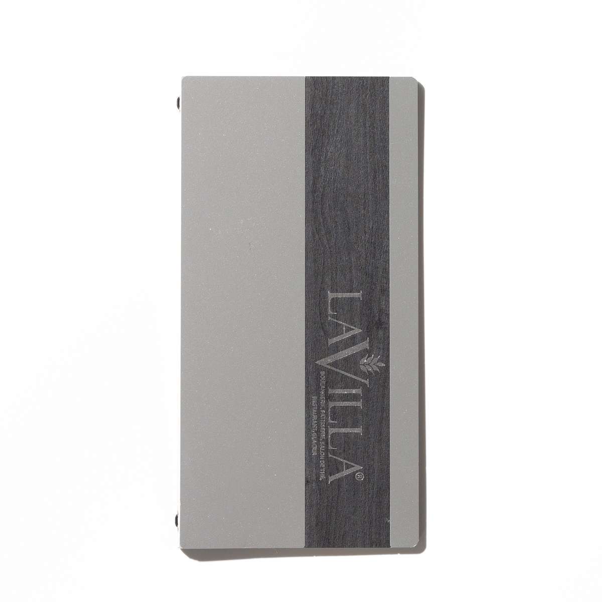 Protège-menus en métal avec une bande imitation bois.