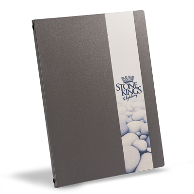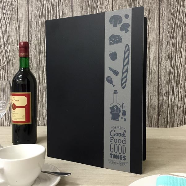 Menu en métal avec bande gravable ou imprimable. 8 couleurs anti éraflures