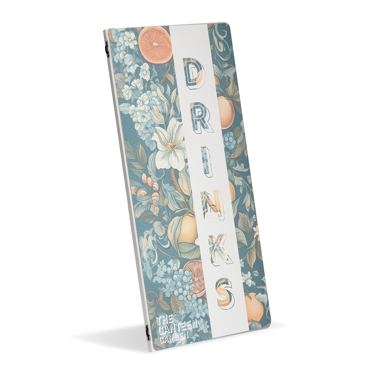 Protège-menu en métal robustes et imprimable, avec un léger effet glacé.