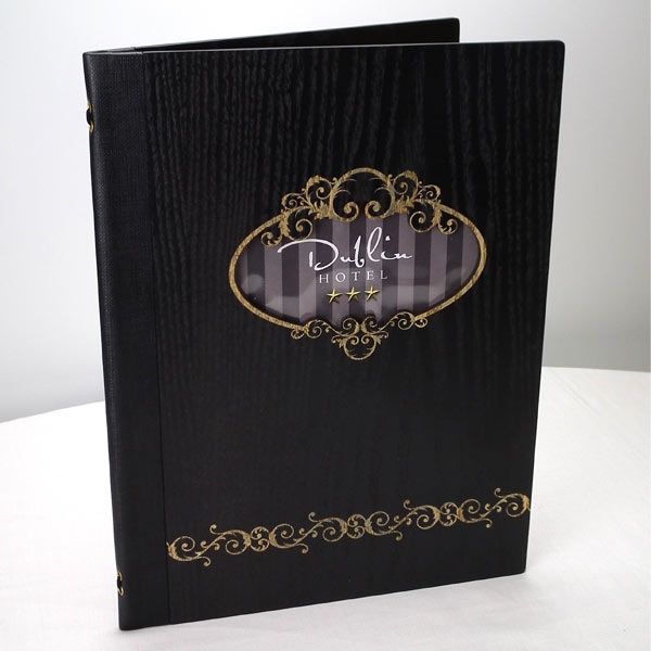 À l’intérieur, ce protège-menu peut afficher vos informations de différentes manières: à travers des pochettes transparentes en PVC, avec des montures en coins, en encadré ou encore en papier seul.