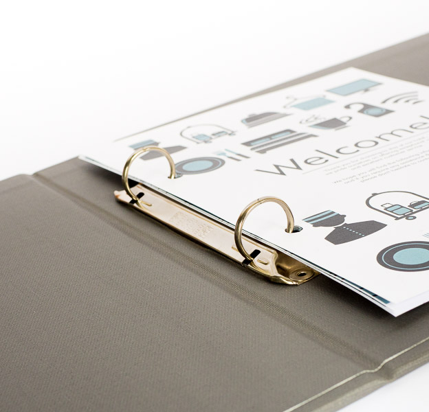 Chaque livret est disponible en deux tailles avec deux types de fixations différents. Notre fixation avec anneaux peut contenir du papier ou des pochettes en plastique.