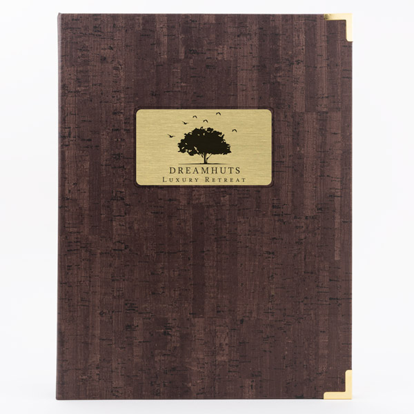 Livret d'accueil très résistant en liège synthétique disponible dans plusieurs coloris naturels.