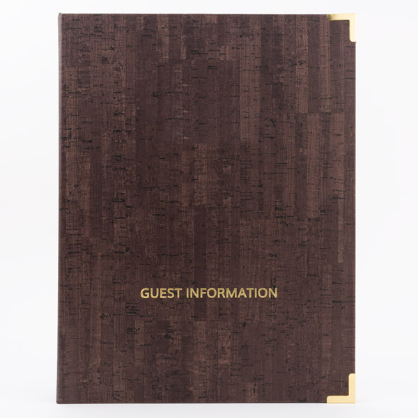 Ces livrets d'accueil ont une couleur liège naturelle. Ils sont fabriqués en matériau synthétique, agréable au toucher et facile à nettoyer.